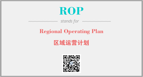 英文缩略词“ROP”经常作为“Regional Operating Plan”的英文缩写来使用,中文表示:“区域运营计划”。本文将详细介绍英文缩写词ROP所代表英文单词,其对应的中文拼音、详细解释以及在英语中的流行度。此外,还有关于缩略词ROP的分类、应用领域及相关应用示例等。