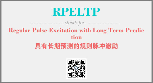 上述内容是“Regular Pulse Excitation with Long Term Prediction”作为“RPELTP”的缩写,解释为“具有长期预测的规则脉冲激励”时的信息,以及英文缩略词RPELTP所代表的英文单词,其对应的中文拼音、详细解释以及在英文中的流行度和相关分类、应用领域及应用示例等。