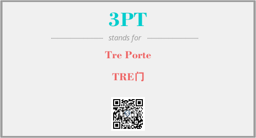 英文缩略词“3PT”经常作为“Tre Porte”的英文缩写来使用,中文表示:“TRE门”。本文将详细介绍英文缩写词3PT所代表英文单词,其对应的中文拼音、详细解释以及在英语中的流行度。此外,还有关于缩略词3PT的分类、应用领域及相关应用示例等。