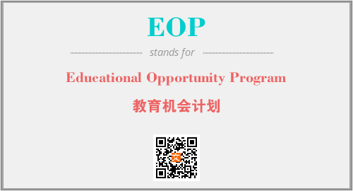 上述内容是“Educational Opportunity Program”作为“EOP”的缩写,解释为“教育机会计划”时的信息,以及英文缩略词EOP所代表的英文单词,其对应的中文拼音、详细解释以及在英文中的流行度和相关分类、应用领域及应用示例等。