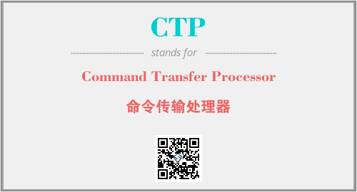 英文缩略词“CTP”经常作为“Command Transfer Processor”的英文缩写来使用,中文表示:“命令传输处理器”。本文将详细介绍英文缩写词CTP所代表英文单词,其对应的中文拼音、详细解释以及在英语中的流行度。此外,还有关于缩略词CTP的分类、应用领域及相关应用示例等。