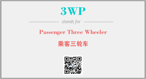 英文缩略词“3WP”经常作为“Passenger Three Wheeler”的英文缩写来使用,中文表示:“乘客三轮车”。本文将详细介绍英文缩写词3WP所代表英文单词,其对应的中文拼音、详细解释以及在英语中的流行度。此外,还有关于缩略词3WP的分类、应用领域及相关应用示例等。