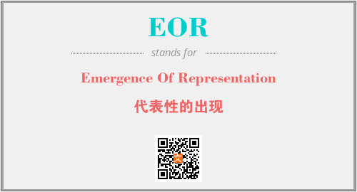 上述内容是“Emergence Of Representation”作为“EOR”的缩写,解释为“代表性的出现”时的信息,以及英文缩略词EOR所代表的英文单词,其对应的中文拼音、详细解释以及在英文中的流行度和相关分类、应用领域及应用示例等。