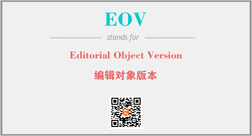 上述内容是“Editorial Object Version”作为“EOV”的缩写,解释为“编辑对象版本”时的信息,以及英文缩略词EOV所代表的英文单词,其对应的中文拼音、详细解释以及在英文中的流行度和相关分类、应用领域及应用示例等。