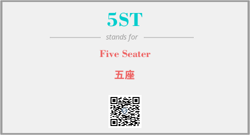 上述内容是“Five Seater”作为“5ST”的缩写,解释为“五座”时的信息,以及英文缩略词5ST所代表的英文单词,其对应的中文拼音、详细解释以及在英文中的流行度和相关分类、应用领域及应用示例等。