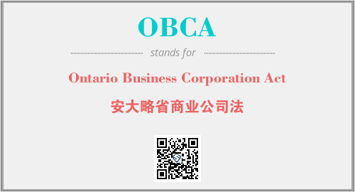英文缩略词“OBCA”经常作为“Ontario Business Corporation Act”的英文缩写来使用,中文表示:“安大略省商业公司法”。本文将详细介绍英文缩写词OBCA所代表英文单词,其对应的中文拼音、详细解释以及在英语中的流行度。此外,还有关于缩略词OBCA的分类、应用领域及相关应用示例等。