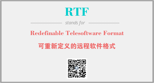 上述内容是“Redefinable Telesoftware Format”作为“RTF”的缩写,解释为“可重新定义的远程软件格式”时的信息,以及英文缩略词RTF所代表的英文单词,其对应的中文拼音、详细解释以及在英文中的流行度和相关分类、应用领域及应用示例等。