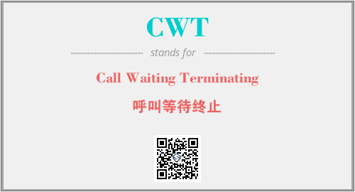 英文缩略词“CWT”经常作为“Call Waiting Terminating”的英文缩写来使用,中文表示:“呼叫等待终止”。本文将详细介绍英文缩写词CWT所代表英文单词,其对应的中文拼音、详细解释以及在英语中的流行度。此外,还有关于缩略词CWT的分类、应用领域及相关应用示例等。