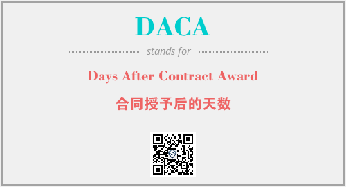 上述内容是“Days After Contract Award”作为“DACA”的缩写,解释为“合同授予后的天数”时的信息,以及英文缩略词DACA所代表的英文单词,其对应的中文拼音、详细解释以及在英文中的流行度和相关分类、应用领域及应用示例等。