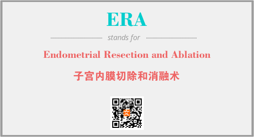 上述内容是“Endometrial Resection and Ablation”作为“ERA”的缩写,解释为“子宫内膜切除和消融术”时的信息,以及英文缩略词ERA所代表的英文单词,其对应的中文拼音、详细解释以及在英文中的流行度和相关分类、应用领域及应用示例等。