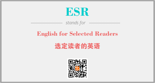 以上为English for Selected Readers英文缩略词ESR的中文解释,以及该英文缩写在英语的流行度、分类和应用领域方面的信息。