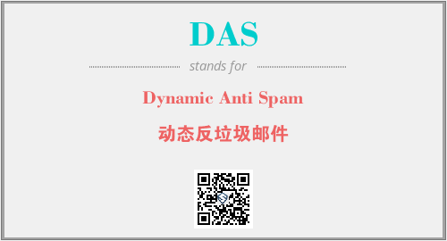 英文缩略词“DAS”经常作为“Dynamic Anti Spam”的英文缩写来使用,中文表示:“动态反垃圾邮件”。本文将详细介绍英文缩写词DAS所代表英文单词,其对应的中文拼音、详细解释以及在英语中的流行度。此外,还有关于缩略词DAS的分类、应用领域及相关应用示例等。