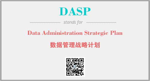 英文缩略词“DASP”经常作为“Data Administration Strategic Plan”的英文缩写来使用,中文表示:“数据管理战略计划”。本文将详细介绍英文缩写词DASP所代表英文单词,其对应的中文拼音、详细解释以及在英语中的流行度。此外,还有关于缩略词DASP的分类、应用领域及相关应用示例等。