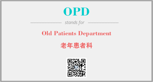 英文缩略词“OPD”经常作为“Old Patients Department”的英文缩写来使用,中文表示:“老年患者科”。本文将详细介绍英文缩写词OPD所代表英文单词,其对应的中文拼音、详细解释以及在英语中的流行度。此外,还有关于缩略词OPD的分类、应用领域及相关应用示例等。