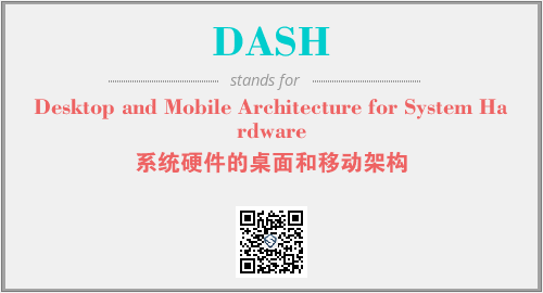 上述内容是“Desktop and Mobile Architecture for System Hardware”作为“DASH”的缩写,解释为“系统硬件的桌面和移动架构”时的信息,以及英文缩略词DASH所代表的英文单词,其对应的中文拼音、详细解释以及在英文中的流行度和相关分类、应用领域及应用示例等。