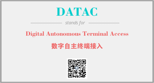 英文缩略词“DATAC”经常作为“Digital Autonomous Terminal Access”的英文缩写来使用,中文表示:“数字自主终端接入”。本文将详细介绍英文缩写词DATAC所代表英文单词,其对应的中文拼音、详细解释以及在英语中的流行度。此外,还有关于缩略词DATAC的分类、应用领域及相关应用示例等。