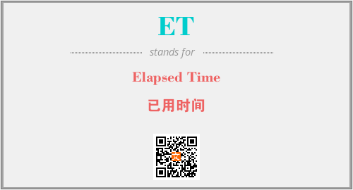 英文缩略词“ET”经常作为“Elapsed Time”的英文缩写来使用,中文表示:“已用时间”。本文将详细介绍英文缩写词ET所代表英文单词,其对应的中文拼音、详细解释以及在英语中的流行度。此外,还有关于缩略词ET的分类、应用领域及相关应用示例等。