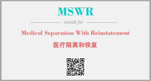 英文缩略词“MSWR”经常作为“Medical Separation With Reinstatement”的英文缩写来使用,中文表示:“医疗隔离和恢复”。本文将详细介绍英文缩写词MSWR所代表英文单词,其对应的中文拼音、详细解释以及在英语中的流行度。此外,还有关于缩略词MSWR的分类、应用领域及相关应用示例等。