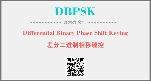 上述内容是“Differential Binary Phase Shift Keying”作为“DBPSK”的缩写,解释为“差分二进制相移键控”时的信息,以及英文缩略词DBPSK所代表的英文单词,其对应的中文拼音、详细解释以及在英文中的流行度和相关分类、应用领域及应用示例等。
