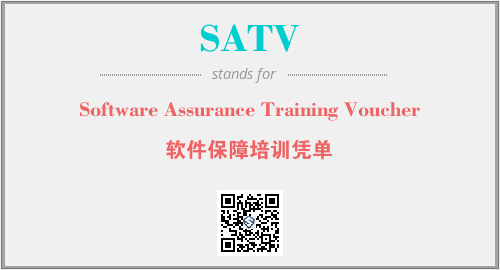 英文缩略词“SATV”经常作为“Software Assurance Training Voucher”的英文缩写来使用,中文表示:“软件保障培训凭单”。本文将详细介绍英文缩写词SATV所代表英文单词,其对应的中文拼音、详细解释以及在英语中的流行度。此外,还有关于缩略词SATV的分类、应用领域及相关应用示例等。