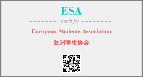 英文缩略词“ESA”经常作为“European Students Association”的英文缩写来使用,中文表示:“欧洲学生协会”。本文将详细介绍英文缩写词ESA所代表英文单词,其对应的中文拼音、详细解释以及在英语中的流行度。此外,还有关于缩略词ESA的分类、应用领域及相关应用示例等。