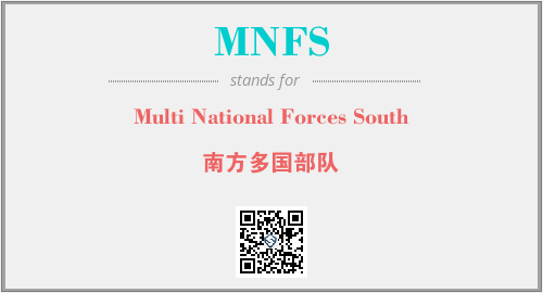 英文缩略词“MNFS”经常作为“Multi National Forces South”的英文缩写来使用,中文表示:“南方多国部队”。本文将详细介绍英文缩写词MNFS所代表英文单词,其对应的中文拼音、详细解释以及在英语中的流行度。此外,还有关于缩略词MNFS的分类、应用领域及相关应用示例等。
