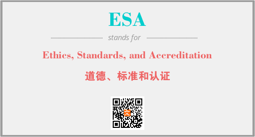 以上为Ethics, Standards, and Accreditation英文缩略词ESA的中文解释,以及该英文缩写在英语的流行度、分类和应用领域方面的信息。