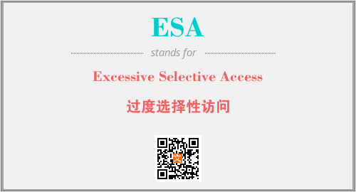 以上为Excessive Selective Access英文缩略词ESA的中文解释,以及该英文缩写在英语的流行度、分类和应用领域方面的信息。