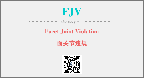 上述内容是“Facet Joint Violation”作为“FJV”的缩写,解释为“面关节违规”时的信息,以及英文缩略词FJV所代表的英文单词,其对应的中文拼音、详细解释以及在英文中的流行度和相关分类、应用领域及应用示例等。