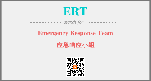 英文缩略词“ERT”经常作为“Emergency Response Team”的英文缩写来使用,中文表示:“应急响应小组”。本文将详细介绍英文缩写词ERT所代表英文单词,其对应的中文拼音、详细解释以及在英语中的流行度。此外,还有关于缩略词ERT的分类、应用领域及相关应用示例等。