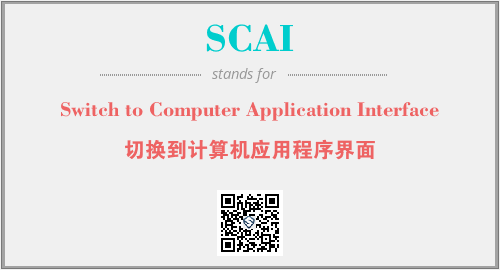 英文缩略词“SCAI”经常作为“Switch to Computer Application Interface”的英文缩写来使用,中文表示:“切换到计算机应用程序界面”。本文将详细介绍英文缩写词SCAI所代表英文单词,其对应的中文拼音、详细解释以及在英语中的流行度。此外,还有关于缩略词SCAI的分类、应用领域及相关应用示例等。