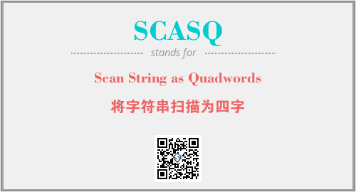 以上为Scan String as Quadwords英文缩略词SCASQ的中文解释,以及该英文缩写在英语的流行度、分类和应用领域方面的信息。