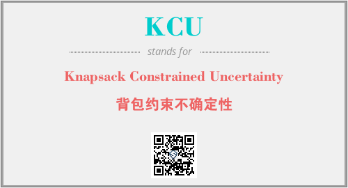 上述内容是“Knapsack Constrained Uncertainty”作为“KCU”的缩写,解释为“背包约束不确定性”时的信息,以及英文缩略词KCU所代表的英文单词,其对应的中文拼音、详细解释以及在英文中的流行度和相关分类、应用领域及应用示例等。