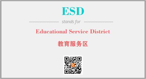 英文缩略词“ESD”经常作为“Educational Service District”的英文缩写来使用,中文表示:“教育服务区”。本文将详细介绍英文缩写词ESD所代表英文单词,其对应的中文拼音、详细解释以及在英语中的流行度。此外,还有关于缩略词ESD的分类、应用领域及相关应用示例等。