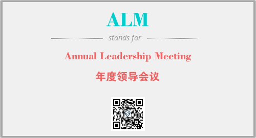 英文缩略词“ALM”经常作为“Annual Leadership Meeting”的英文缩写来使用,中文表示:“年度领导会议”。本文将详细介绍英文缩写词ALM所代表英文单词,其对应的中文拼音、详细解释以及在英语中的流行度。此外,还有关于缩略词ALM的分类、应用领域及相关应用示例等。