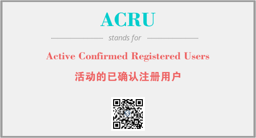 上述内容是“Active Confirmed Registered Users”作为“ACRU”的缩写,解释为“活动的已确认注册用户”时的信息,以及英文缩略词ACRU所代表的英文单词,其对应的中文拼音、详细解释以及在英文中的流行度和相关分类、应用领域及应用示例等。