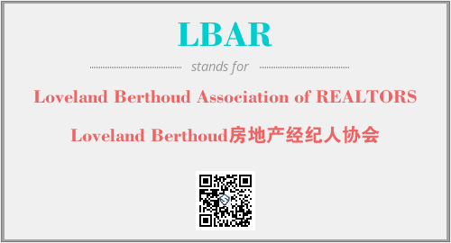 上述内容是“Loveland Berthoud Association of REALTORS”作为“LBAR”的缩写,解释为“Loveland Berthoud房地产经纪人协会”时的信息,以及英文缩略词LBAR所代表的英文单词,其对应的中文拼音、详细解释以及在英文中的流行度和相关分类、应用领域及应用示例等。