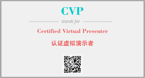 英文缩略词“CVP”经常作为“Certified Virtual Presenter”的英文缩写来使用,中文表示:“认证虚拟演示者”。本文将详细介绍英文缩写词CVP所代表英文单词,其对应的中文拼音、详细解释以及在英语中的流行度。此外,还有关于缩略词CVP的分类、应用领域及相关应用示例等。