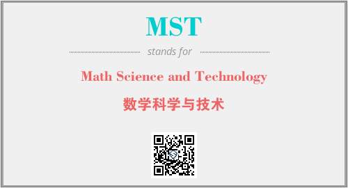 英文缩略词“MST”经常作为“Math Science and Technology”的英文缩写来使用,中文表示:“数学科学与技术”。本文将详细介绍英文缩写词MST所代表英文单词,其对应的中文拼音、详细解释以及在英语中的流行度。此外,还有关于缩略词MST的分类、应用领域及相关应用示例等。