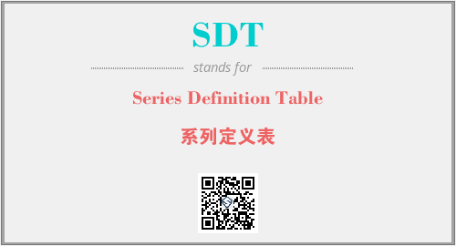 英文缩略词“SDT”经常作为“Series Definition Table”的英文缩写来使用,中文表示:“系列定义表”。本文将详细介绍英文缩写词SDT所代表英文单词,其对应的中文拼音、详细解释以及在英语中的流行度。此外,还有关于缩略词SDT的分类、应用领域及相关应用示例等。