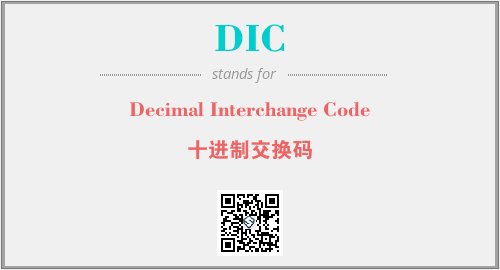 英文缩略词“DIC”经常作为“Decimal Interchange Code”的英文缩写来使用,中文表示:“十进制交换码”。本文将详细介绍英文缩写词DIC所代表英文单词,其对应的中文拼音、详细解释以及在英语中的流行度。此外,还有关于缩略词DIC的分类、应用领域及相关应用示例等。