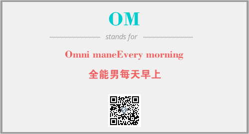 上述内容是“Omni maneEvery morning”作为“OM”的缩写,解释为“全能男每天早上”时的信息,以及英文缩略词OM所代表的英文单词,其对应的中文拼音、详细解释以及在英文中的流行度和相关分类、应用领域及应用示例等。