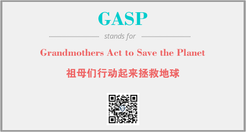 上述内容是“Grandmothers Act to Save the Planet”作为“GASP”的缩写,解释为“祖母们行动起来拯救地球”时的信息,以及英文缩略词GASP所代表的英文单词,其对应的中文拼音、详细解释以及在英文中的流行度和相关分类、应用领域及应用示例等。