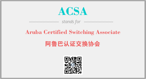 英文缩略词“ACSA”经常作为“Aruba Certified Switching Associate”的英文缩写来使用,中文表示:“阿鲁巴认证交换协会”。本文将详细介绍英文缩写词ACSA所代表英文单词,其对应的中文拼音、详细解释以及在英语中的流行度。此外,还有关于缩略词ACSA的分类、应用领域及相关应用示例等。