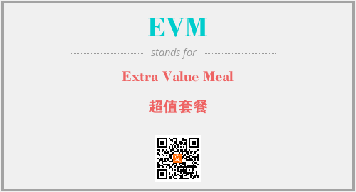 英文缩略词“EVM”经常作为“Extra Value Meal”的英文缩写来使用,中文表示:“超值套餐”。本文将详细介绍英文缩写词EVM所代表英文单词,其对应的中文拼音、详细解释以及在英语中的流行度。此外,还有关于缩略词EVM的分类、应用领域及相关应用示例等。