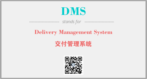 英文缩略词“DMS”经常作为“Delivery Management System”的英文缩写来使用,中文表示:“交付管理系统”。本文将详细介绍英文缩写词DMS所代表英文单词,其对应的中文拼音、详细解释以及在英语中的流行度。此外,还有关于缩略词DMS的分类、应用领域及相关应用示例等。