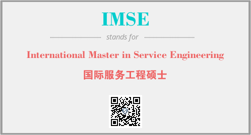 上述内容是“International Master in Service Engineering”作为“IMSE”的缩写,解释为“国际服务工程硕士”时的信息,以及英文缩略词IMSE所代表的英文单词,其对应的中文拼音、详细解释以及在英文中的流行度和相关分类、应用领域及应用示例等。