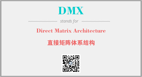上述内容是“Direct Matrix Architecture”作为“DMX”的缩写,解释为“直接矩阵体系结构”时的信息,以及英文缩略词DMX所代表的英文单词,其对应的中文拼音、详细解释以及在英文中的流行度和相关分类、应用领域及应用示例等。
