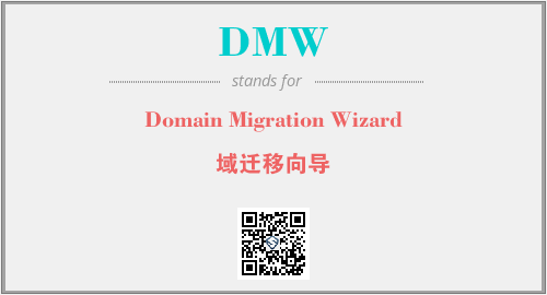 上述内容是“Domain Migration Wizard”作为“DMW”的缩写,解释为“域迁移向导”时的信息,以及英文缩略词DMW所代表的英文单词,其对应的中文拼音、详细解释以及在英文中的流行度和相关分类、应用领域及应用示例等。