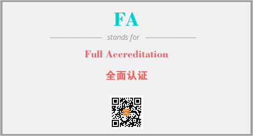 上述内容是“Full Accreditation”作为“FA”的缩写,解释为“全面认证”时的信息,以及英文缩略词FA所代表的英文单词,其对应的中文拼音、详细解释以及在英文中的流行度和相关分类、应用领域及应用示例等。